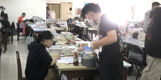 2022级新生正在共写励志明信片,仔细包装糖果,为备考学子送上真挚的鼓励与祝福。