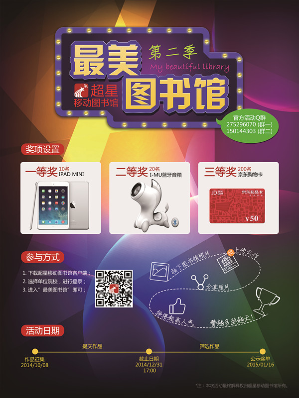 【馆务新闻】超星移动图书馆“最美图书馆”第二季活动已经开始!大奖等您拿