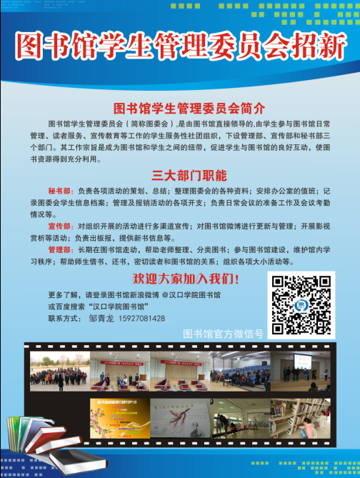 更多了解,请登录图书馆新浪微博 @汉口学院图书馆,微信公众号:汉口学院图书馆,官网:汉口学院图书馆http://lib.hkxy.edu.cn/