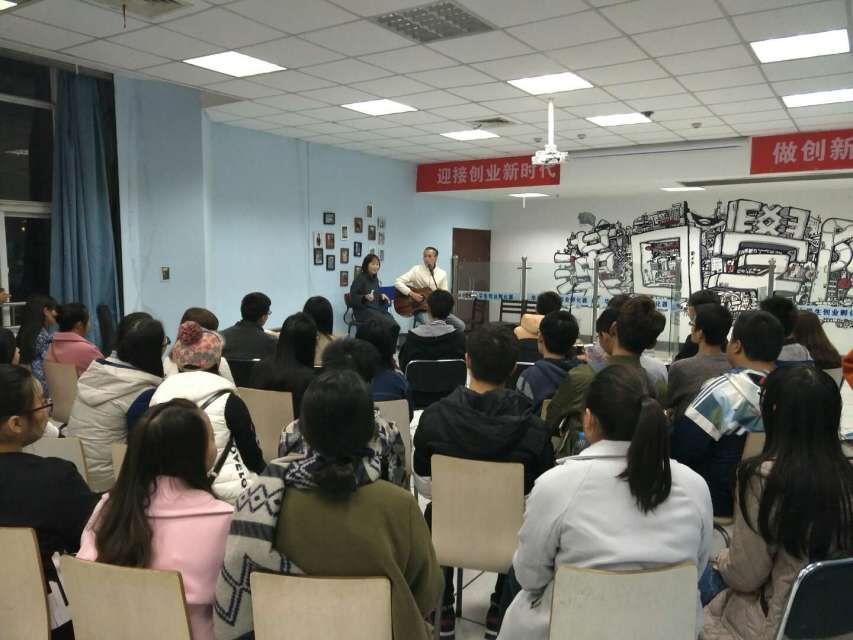 无需太多语言,他通过音乐来与我们沟通,他唱了很多首歌既有自己的原创也有其他歌手的歌,他的声音,像是从很远的地方传来,美妙而又悠长……活动最后,大家都还沉浸在他的歌声里,他最后以几首大家最想听的歌来结束本次活动,最美好动听的歌声,一把吉他,一只话筒就足够。伴随着主持人的话语,汉口学院第四届真人图书馆活动圆满结束。
