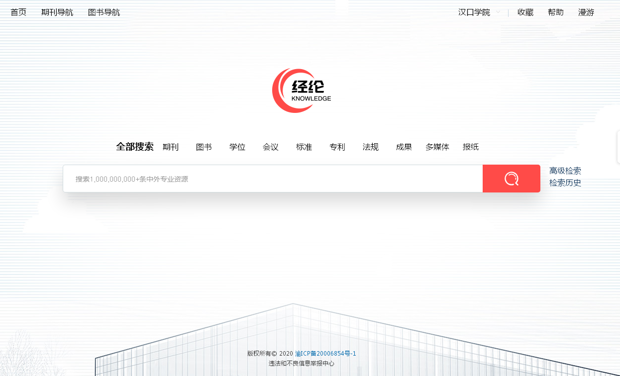 经纶知识资源系统整合全球中外学术文献,覆盖多种文献类型。通过数据挖掘,知识关联为读者带来独一无二的发现体验。只需使用统一检索框,即可快速检索发现图书馆的各种纸本、电子文献数据、全球专业学术文献及免费优质学术资源。提供来自1,000+内容供应商的数亿中外文献记录,其中外文资源超过5亿条。为读者乐享知识探索。
