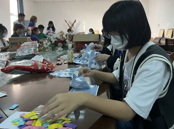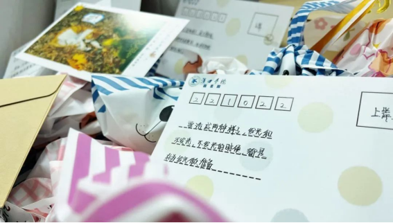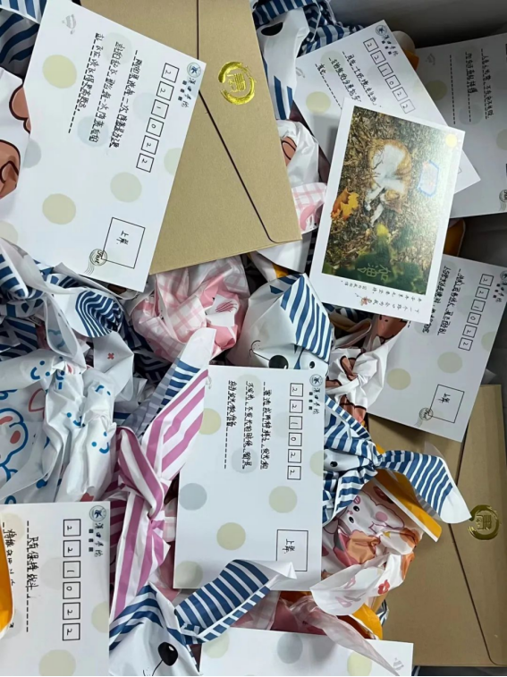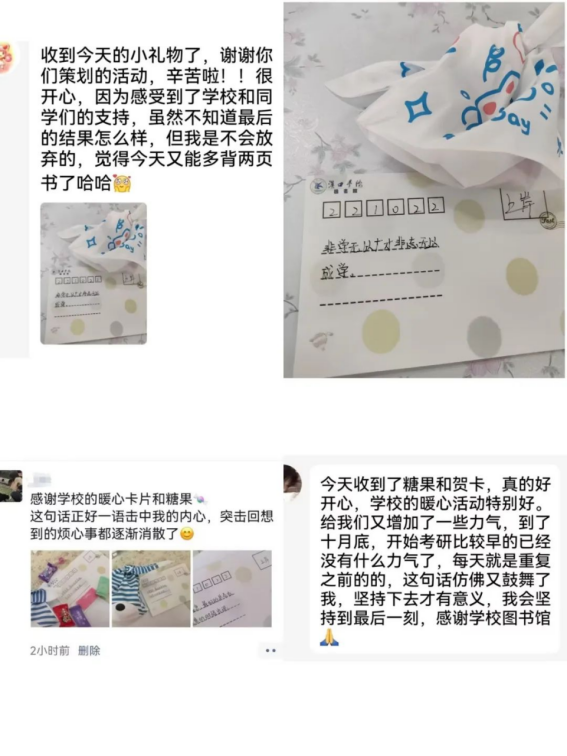 2022级新生正在共写励志明信片,仔细包装糖果,为备考学子送上真挚的鼓励与祝福。