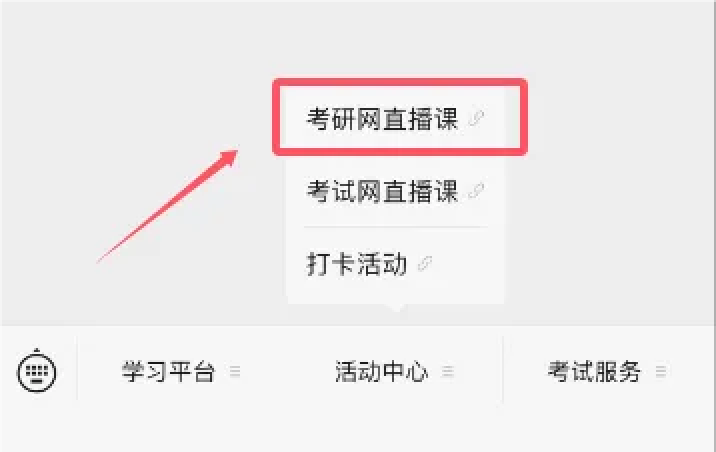 2、进入首页,点击底部菜单“活动中心”-“考研网直播课”观看直播。