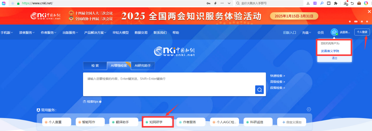 个人登录:右上角注册个人账号登录平台(已有知网个人账号的可直接登录)。