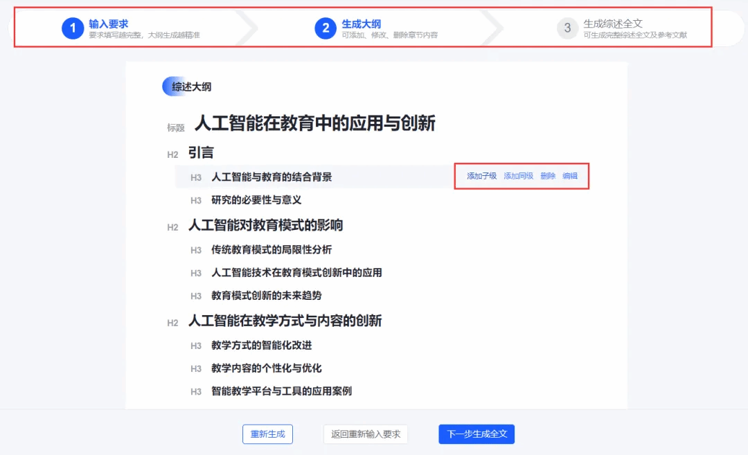 可以编辑修改AI生成的大纲
