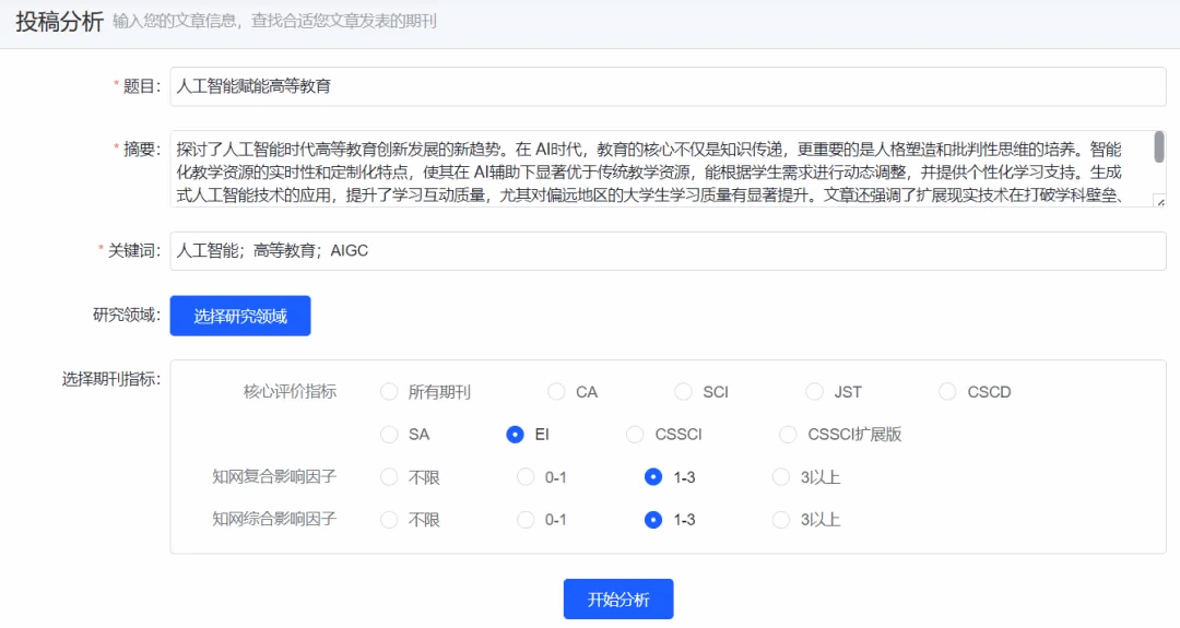 > 根据论文基本信息,分析适宜投稿期刊