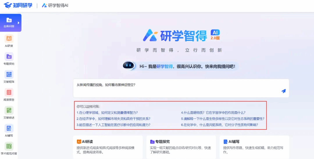 下面,将从AI全库问答、AI研读、AI写作三个方面,向大家详细介绍这新功能和用法。