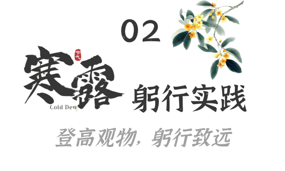 寒露时节秋意渐浓,露凝而白。民间有登高的习俗,古人认为此时登高可避灾祈福,且深秋晴空万里,山间层林尽染,能够欣赏到“霜叶红于二月花”的秋景。除此之外,民间还有 “寒露吃芝麻” 的说法,人们认为芝麻能润燥养生。还有不少地方会尝鲜蟹,此时的螃蟹膏满黄肥,但需要注意的是螃蟹性寒,需搭配姜醋食用。