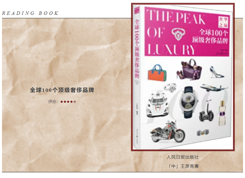 本书以化妆品、试装、鞋履、包袋、名表、珠宝、汽车、游艇、飞机、创新为十大类别,精选了100个全球名品,介绍他们的历史故事、品牌特色、产品概览等,让读者了解新的时尚潮流资讯,同时,每个品牌页面设置一个二维码,只需扫描就可观看品牌宣传视频,实现跨媒体阅读。