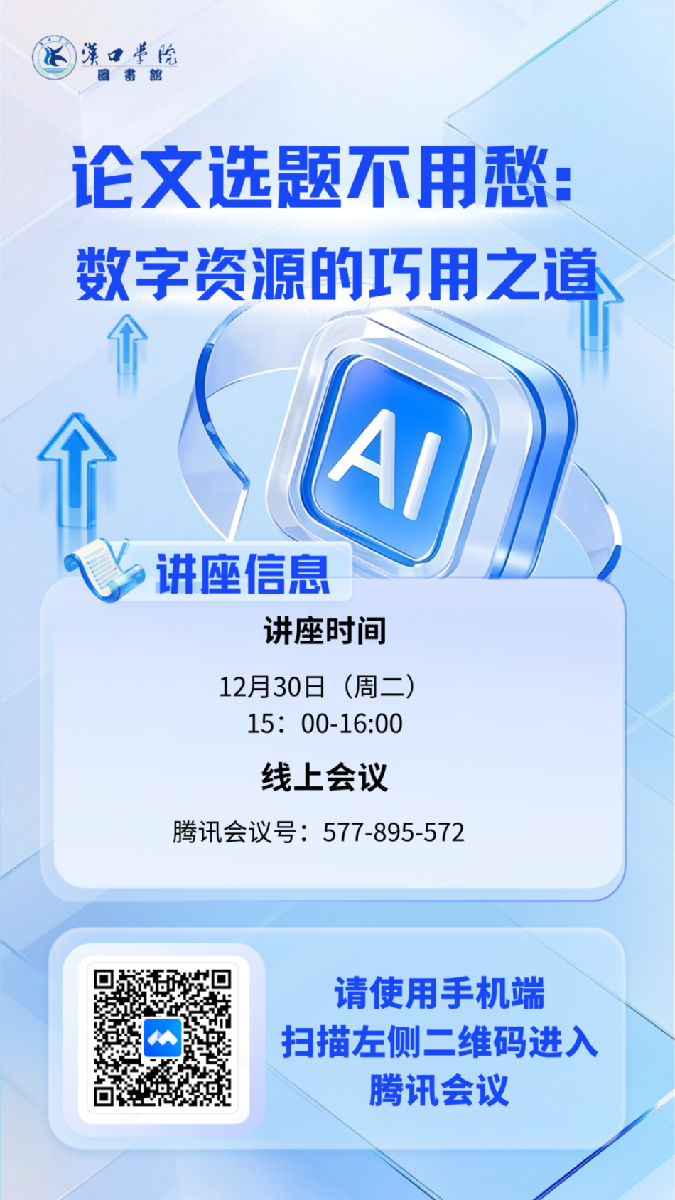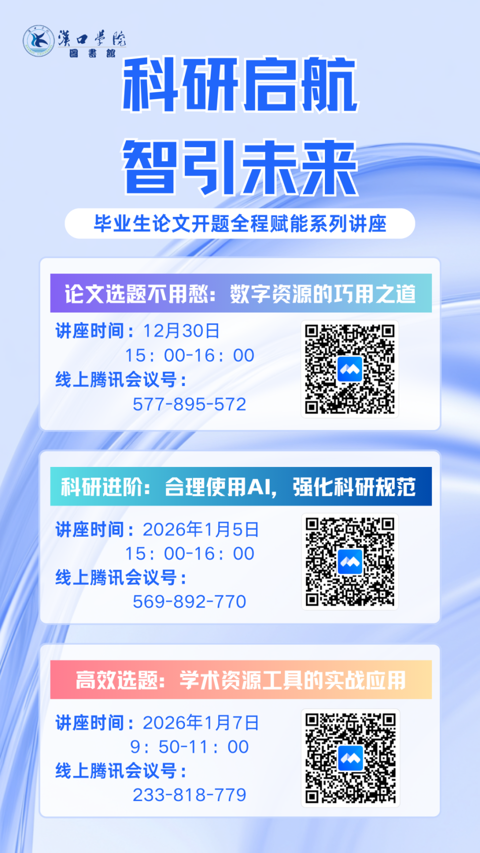 本次系列讲座旨在为应届毕业生提供一站式的论文开题指导,系统提升其信息素养与科研能力。通过三次循序渐进的专题培训,引导同学们: