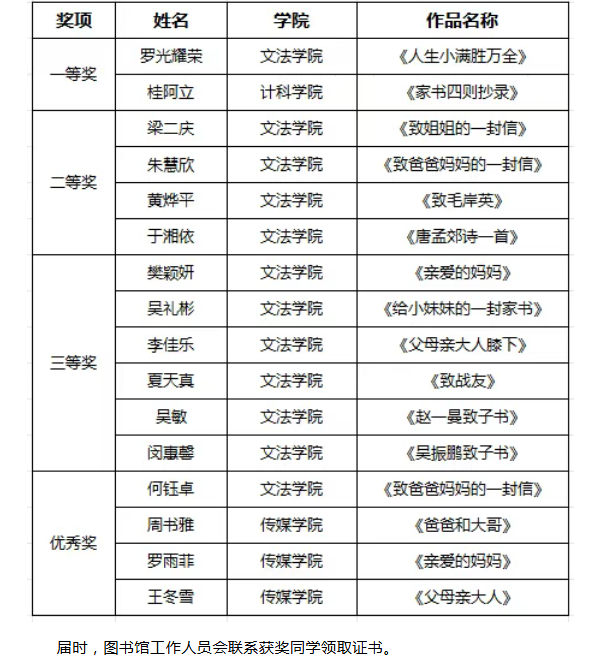 【获奖名单】汉口学院第三届“情传于字”家书共写比赛获奖名单出炉