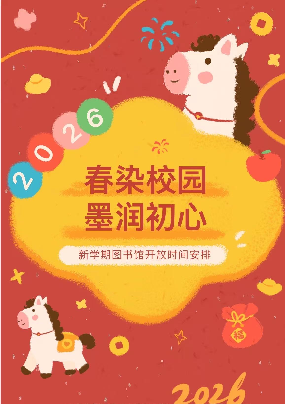 【馆务通知】2026新学期图书馆开放时间安排