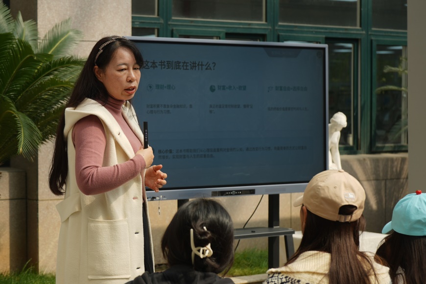 活动现场,李艳华副教授结合《金钱心理学》核心观点,围绕“财富是心态,不是技术”展开分享。全书以18条理财原则为脉络,剖析投资中非理性决策的心理诱因,强调“守富”比“致富”更依赖风险认知与规避;通过复利效应、消费观念等议题,结合“豪车悖论”“尾部胜利”等案例,揭示财富积累中被忽视的隐性规律,主张以“容错机制”实现财务自由。书中结合美国消费者心态演变史的理论支撑,用通俗语言构建“实践+反思”的理财框架,覆盖不同经验层次读者的需求,让在场师生对“金钱与心理”的关联有了全新认知。